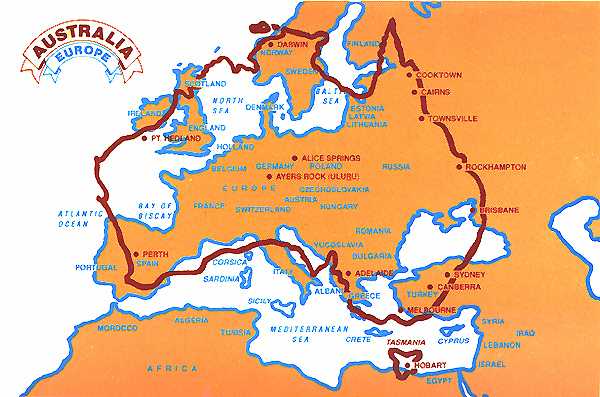 Att Australien är stort, det vet alla, men hur stort är svårt att föreställa sig. Australien kan liknas med Europa inklusive Turkiet. Avståndet mellan Cairns i Norra Queensland till Sydney är ungefär lika stort som mellan Stockholm och Rom.