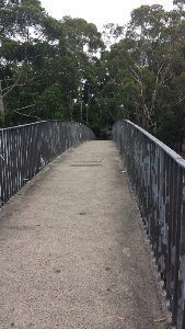 Det är som en hängbro, men ändå inte. Den svajar när jag går på den, och är vi flera på den känns det som om dem skulle falla i bitar och att jag skulle Störta ner på bilvägen…