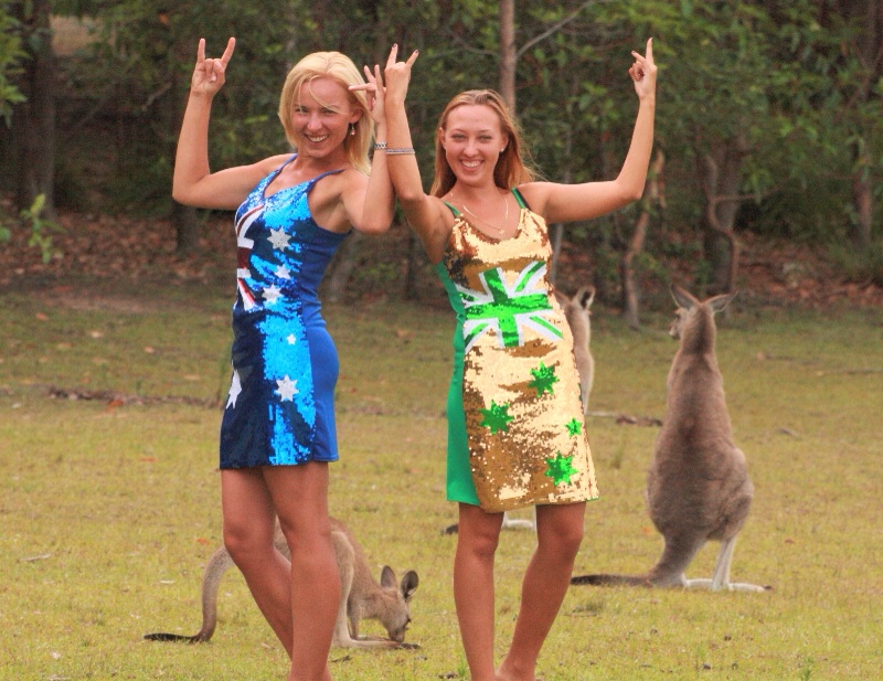 imageMin första tanke var att psyckpatienterna hade rymt, och jag hade nästan rätt. Det var turister och ett 100-tal kängurur. Vilda, men vana vid människor, relativt orädda och gillade att bli matade. Själv skulle jag ha blivit jätterädd för dessa två tjejer i skimrande klänningar…