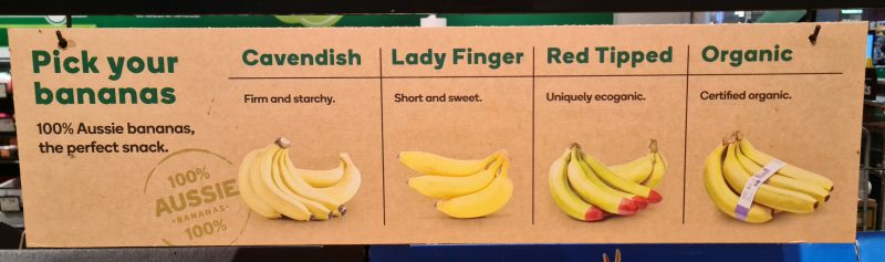 Välkommen till min bananskola. Innan du väljer din banan behöver du veta vilken banan du vill ha. Ska den vara helt eller delvis ekologisk? I Australien är det detta som gäller.