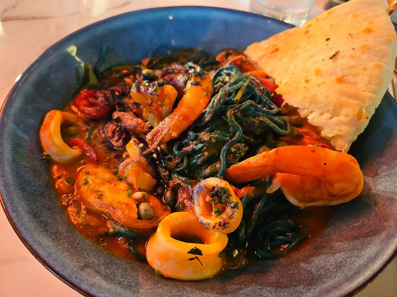 Hade sett en restaurang som hade en rätt som vi kunde dela på. Såg intressant ut, och eftersom vi hade haft en lätt lunch (kycklingwrap) så kände jag mig lite hungrig.