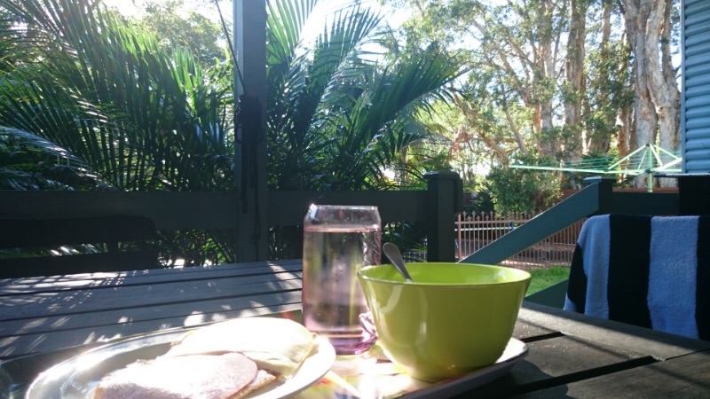 Lakes Entrance, Victoria. Sol och värme. Picknicklunch vid strandkanten.