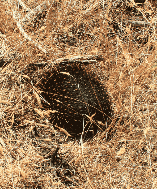 Echidnas påminner lite om igelkottar. De har båda taggiga ytor som fälls upp när de känner sig hotade. De är mörka till utseendet, förutom taggarna som brukar vara svartgula (AIKare någon?).
