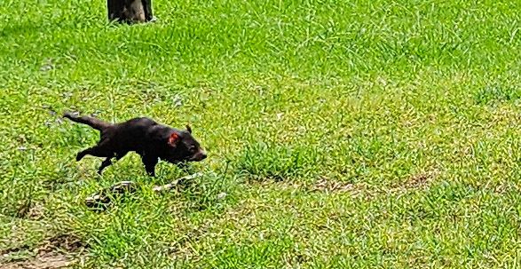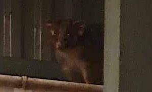 Det är possums på taket, eller vid poolen. Possum, eller pungråtta, är ett litet djur (ca 2,4kg som vuxen) och är veganer. De äter löv, växter och frukt och är nattdjur. Därav kvällens besök.