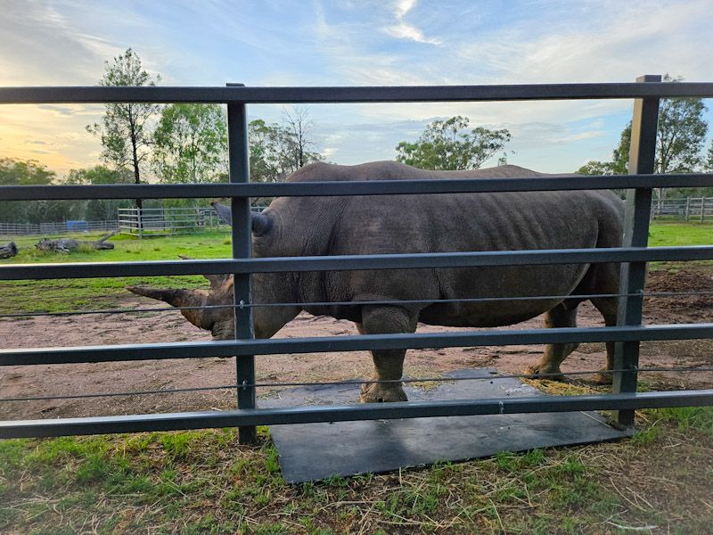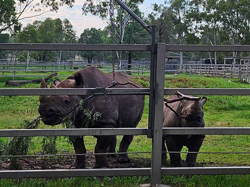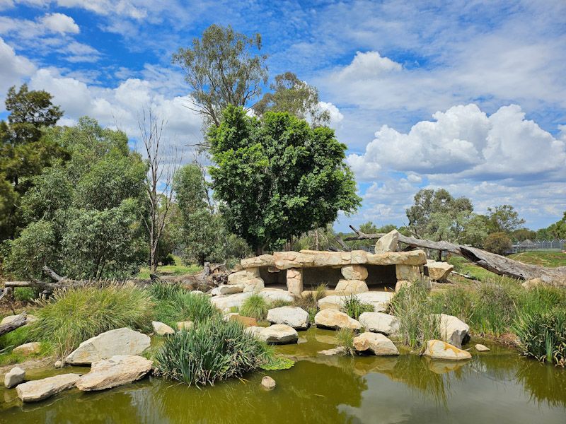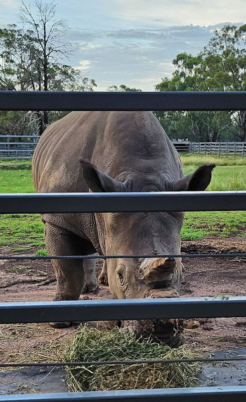 Iväg till Dubbo Western Plains Zoo där vi ska bo över natten. 33 grader varmt, tryckande värme. Så skönt efter Sydneys 20 grader och duggregn.