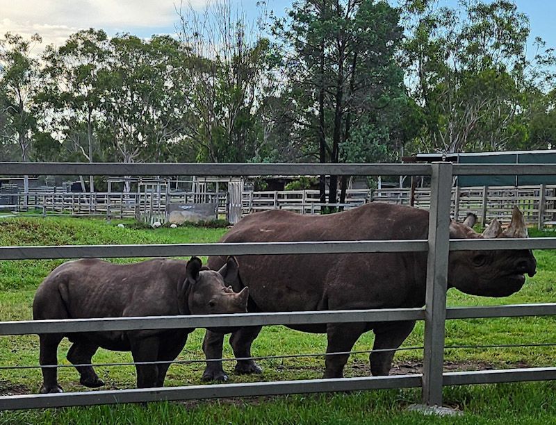 Antiloper, noshörningar och zebror mumsar gott på sin mat. Mamma och jag beundrar djuren som blänger på oss som om vi var de zoobjekten.