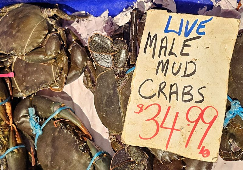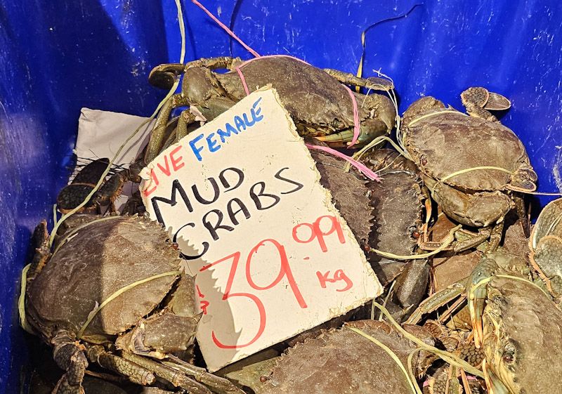 Efter en nödvändig visit på damernas gick vi runt och tittade på fiskarna, köpte barramundi till middagen, och tog lite foton samt besökte fiskmåsarna. Tydligen behövde vare parasoll en egen fiskmås att vakta det.
