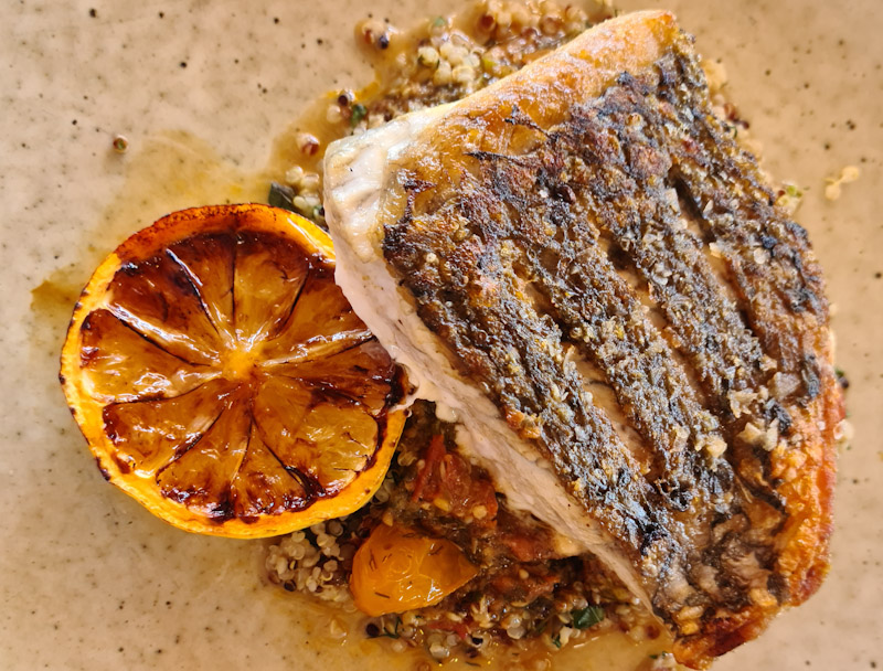 Utsikt från lunchrestaurangen Bläckfisk följt av barramundi
