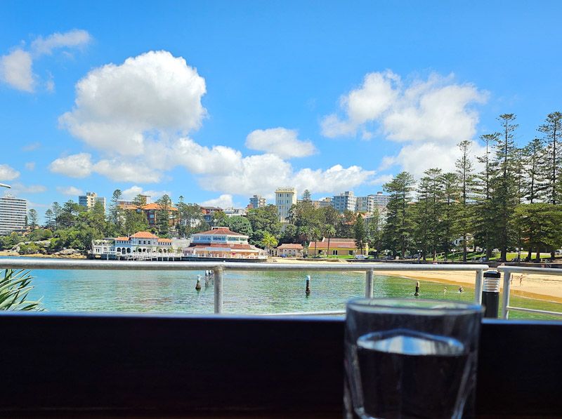 Efter träningen, följt av bad i poolen och dusch, tog mamma och jag bussen till Manly Wharf för att äta lunch innan eftermiddagens aktivitet.